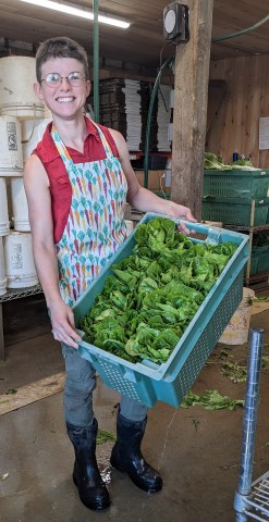 You might know that while a lot of the produce we grow goes to you, some of what we grow is sold to wholesale accounts. Once we get going later in August , we deliver 2-3 times a week to Just Food Co-op, St. Olaf College, Carleton College; plus Minneapolis Public Schools, and distributors who sell to schools, restaurants and stores, a soup maker (Chx Soup Co) and a kim chi maker (You betcha Fermntcha). Mostly for peppers, fall kale and cabbage, carrots beets and other roots all winter. We don’t do it much in the summer — we’re plenty busy with harvesting your shares and tending summer and fall crops — but really get rocking with bigger harvests in mid-August.